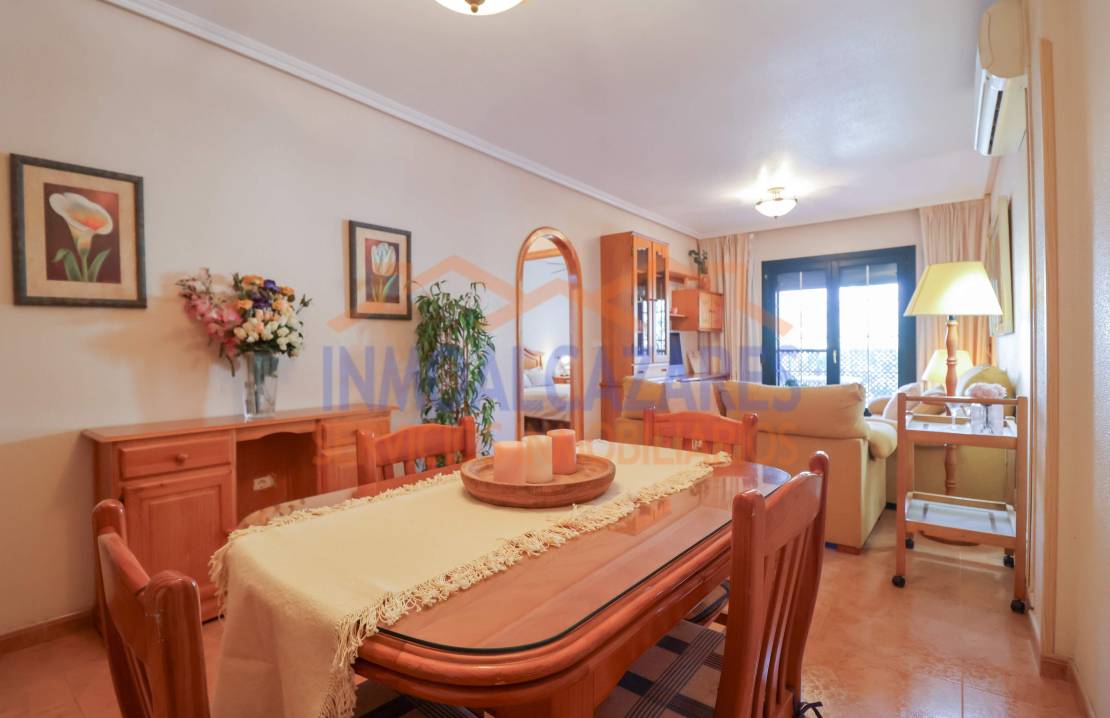 Exclusive! A move-in ready apartment, like new, located in one of the most sought-after areas of Los Narejos, especially ideal if you are looking for comfort.~It features a cozy living-dining room with access to a terrace, perfect for enjoying the climate and relaxing evenings, with open views over the square. The property also includes a fully equipped independent kitchen with a closed utility area, two double bedrooms, and a full bathroom.~A private parking space is included, with very easy access within the same residential complex.~The property is extremely well maintained and fully equipped, including air conditioning and built-in wardrobes. It is located on the first floor of a building with a lift that reaches the basement.~Situated in a highly desirable area, in Plaza 525, where you will find all services within walking distance such as restaurants, supermarkets, and shops, and just 450 meters from the beach. In Los Narejos, Los Alcázares, Murcia.~The indicated price does not include 7.75% transfer tax (ITP), nor notary and registry fees.~~