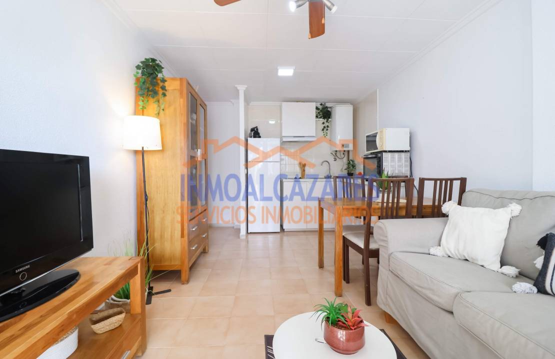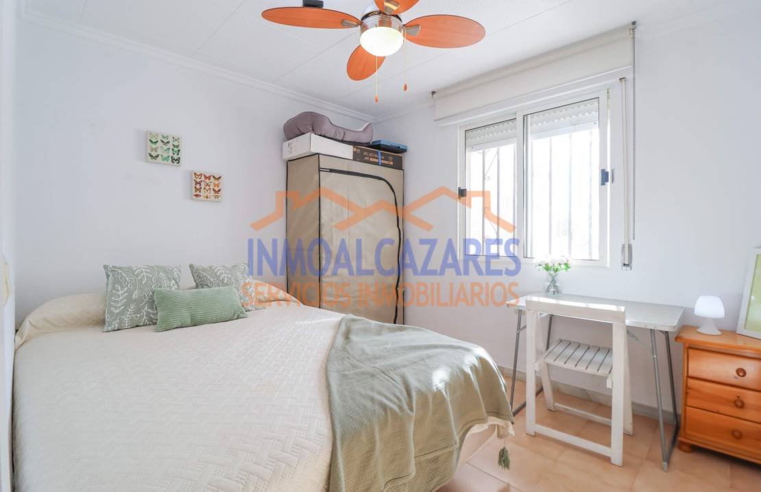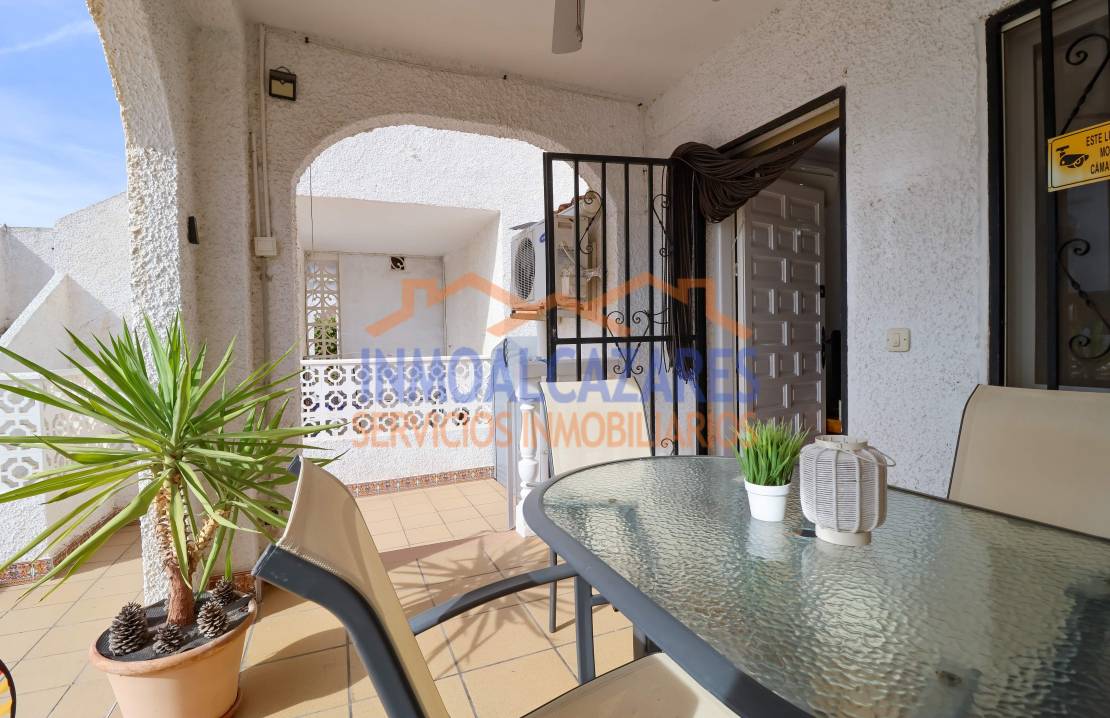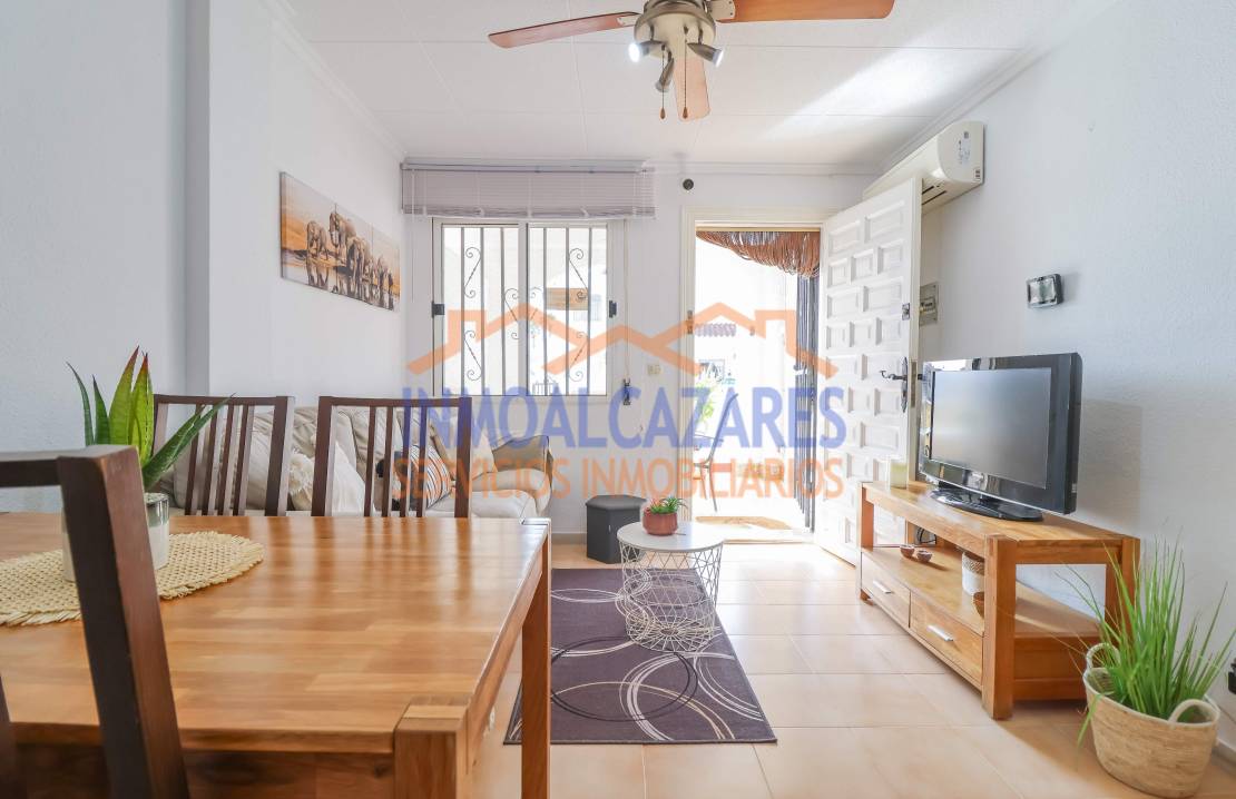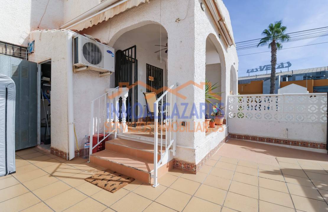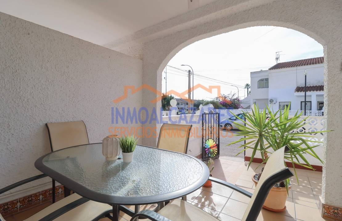 Ce magnifique bungalow de plain-pied, prêt à emménager et orienté sud-est, est le choix idéal si vous recherchez confort et espace extérieur.~À l’avant, la propriété dispose d’un grand jardin carrelé et d’un porche — parfaits pour passer de merveilleuses soirées et profiter du climat agréable de la Costa Cálida — avec une entrée adaptée aux personnes à mobilité réduite. À l’intérieur, vous trouverez un salon-salle à manger avec une cuisine ouverte, entièrement équipée et récemment rénovée, deux chambres doubles et une salle de bain complète également rénovée récemment.~La maison est prête à être habitée, entièrement meublée, avec climatisation et un débarras dans le jardin.~Située dans l’urbanisation Oasis, un quartier résidentiel à proximité du centre commercial Las Velas et à deux pas du marché hebdomadaire du samedi. À seulement 5 minutes en voiture de la plage. Parfaite pour les vacances ou pour y vivre toute l’année. Ne laissez pas passer cette opportunité ! À Los Alcázares, Murcie.~~