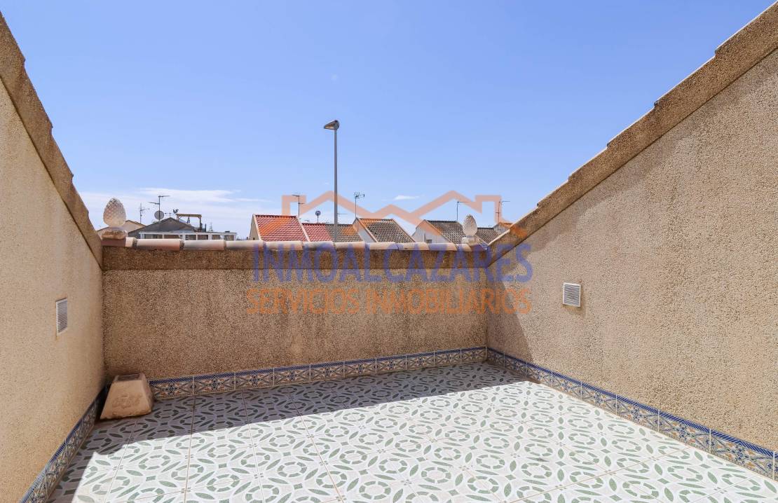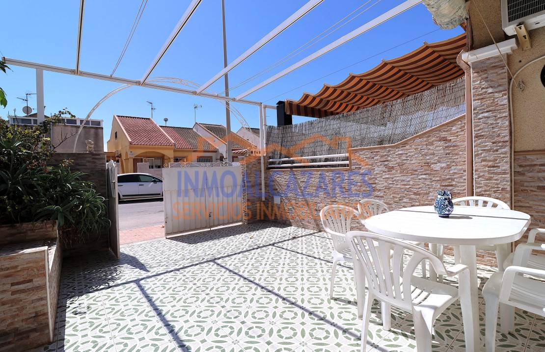 Exclusief! De beste optie als u op zoek bent naar een comfortabele woning met buitenruimte en alles wat u nodig hebt om direct in te trekken.~Deze schitterende duplex beschikt aan de voorzijde over een betegelde tuin met een uitstekende ZUID-ligging, ideaal om gezellige avonden door te brengen in het heerlijke klimaat van de Costa Cálida. Op de begane grond vindt u een lichte woon- en eetkamer, een slaapkamer, een badkamer en een volledig uitgeruste aparte keuken met toegang tot een wasruimte en ruime achterpatio. Op de bovenverdieping zijn er nog een badkamer en twee tweepersoonsslaapkamers, waarvan één met een privé-solarium – perfect om te genieten van de zon en de zeebries van de Mar Menor.~De woning verkeert in goede staat, met inbouwkasten, airconditioning en is volledig gemeubileerd. Instapklaar en ideaal zowel voor vakanties als om het hele jaar door te wonen.~De ligging is uitstekend, op slechts 950 m van het strand waar u kunt genieten van het warme water van de Mar Menor. Gelegen in een rustige woonwijk en dicht bij alle voorzieningen zoals school, supermarkten, medisch centrum enz. Wacht niet langer als dit is wat u zoekt – neem contact met ons op! In Los Alcázares, Murcia.~~