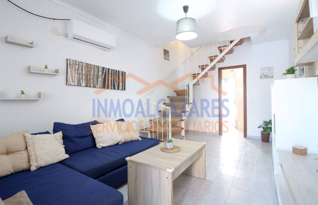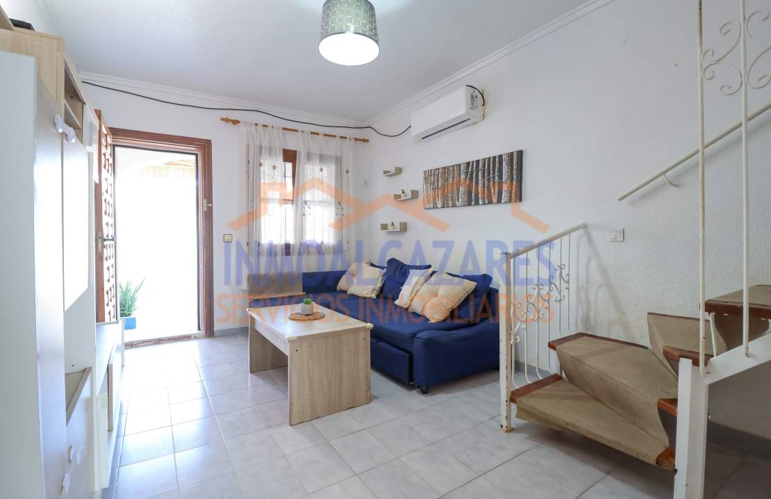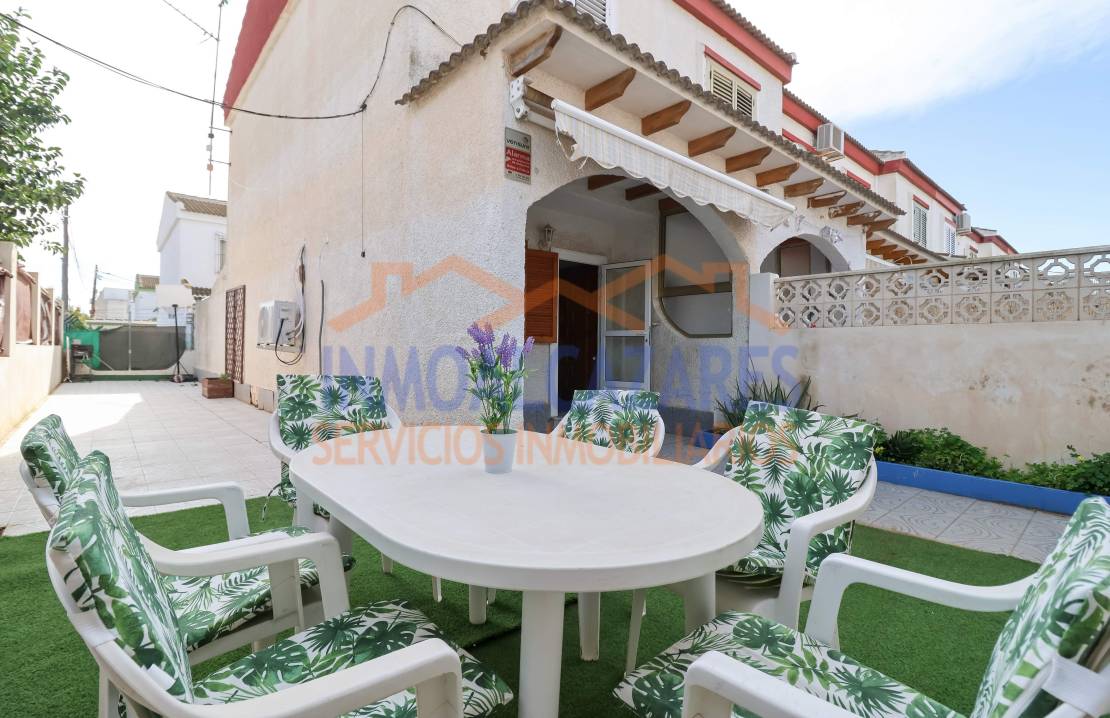 Exclusief!! Bent u op zoek naar een woning met veel buitenruimte en potentieel om uw droomproject te realiseren, dan is deze duplex een kans die u niet mag missen.~De woning beschikt over een L-vormige betegelde voortuin, ideaal voor gezellige avonden met familie en vrienden en om optimaal te genieten van het klimaat van de Costa Cálida. Er is ruimte om meerdere voertuigen te parkeren en zelfs de mogelijkheid om een zwembad te plaatsen. Op de begane grond vindt u een gezellige woon-eetkamer en een volledig uitgeruste aparte keuken met toegang tot de achterpatio, die is voorzien van een wasruimte, een badkamer, een berging en ruimte voor het creëren van een chill-outzone. Op de bovenverdieping bevinden zich twee slaapkamers en een complete badkamer.~De woning heeft enkele verbeteringen en opfriswerk nodig — een perfecte gelegenheid om deze geheel naar eigen smaak in te richten. Ze wordt gedeeltelijk gemeubileerd verkocht en beschikt over een ingebouwde kast.~Gelegen in de urbanisatie La Dorada, op slechts enkele stappen van het zwembad Ola Azul, en met alle voorzieningen van het dorp binnen handbereik zonder afhankelijk te zijn van een auto. Het strand ligt op slechts 650 meter afstand, waar u kunt genieten van watersportactiviteiten, de zee en de fijne sfeer van de omgeving. Perfect als vakantiewoning of voor permanente bewoning. In Los Alcázares, Murcia.~~