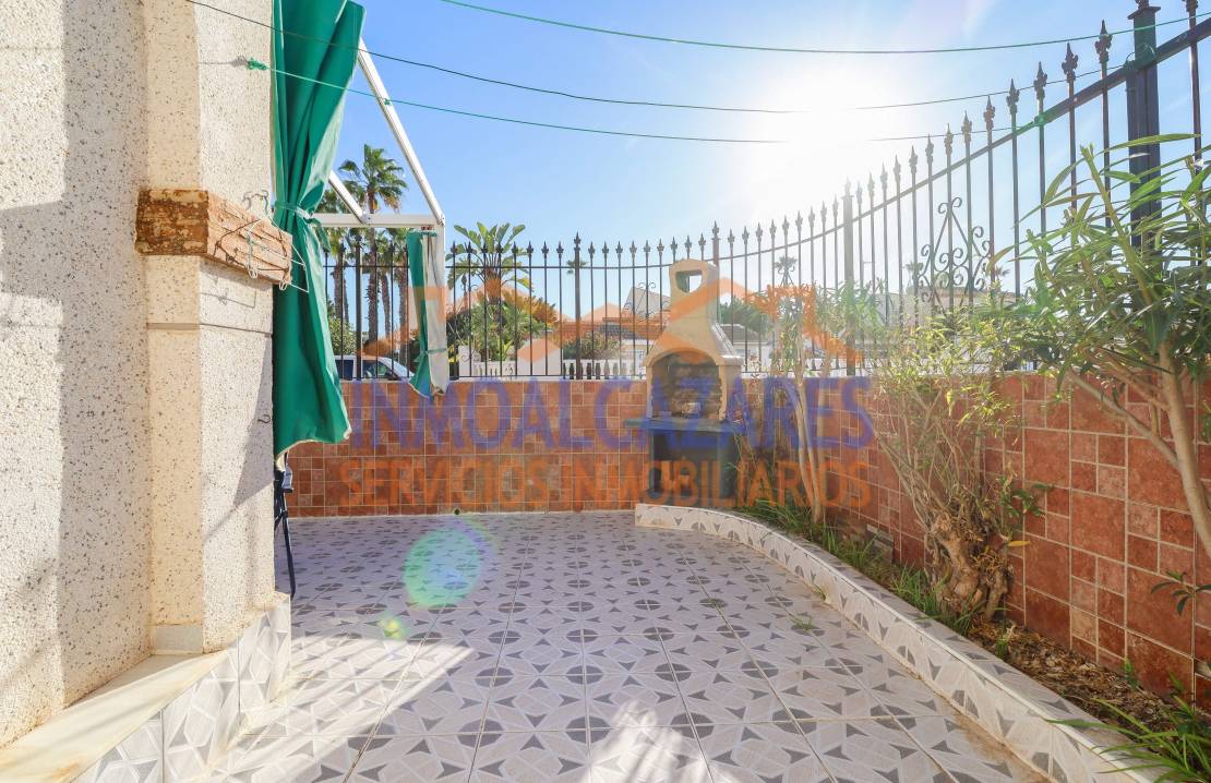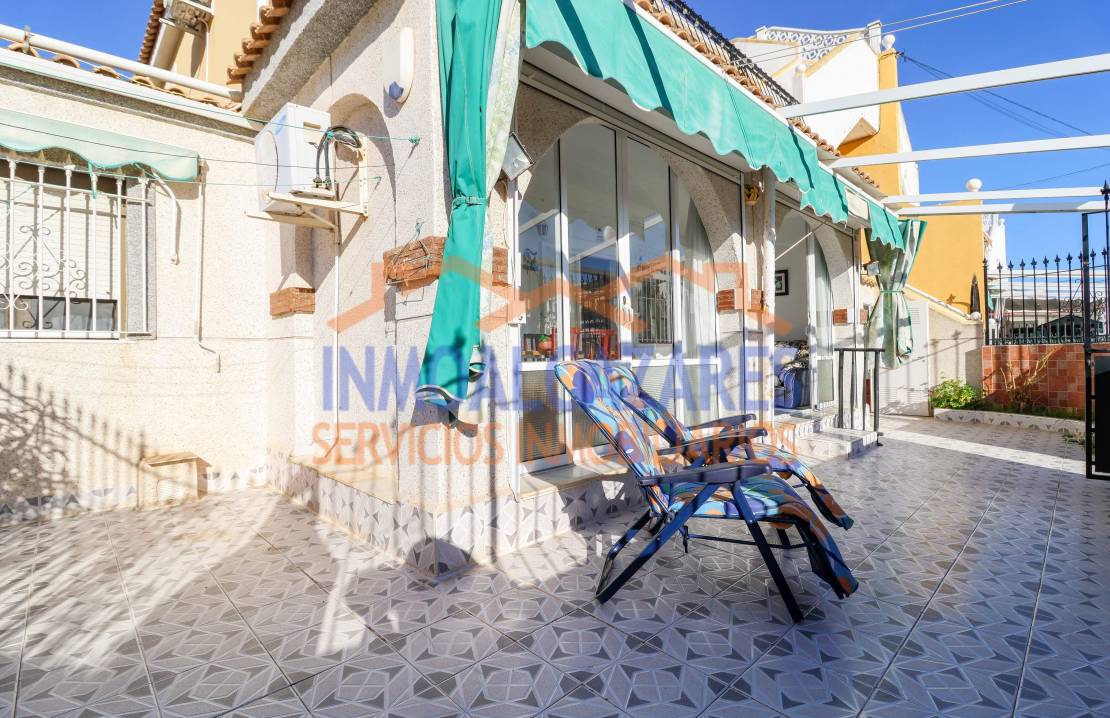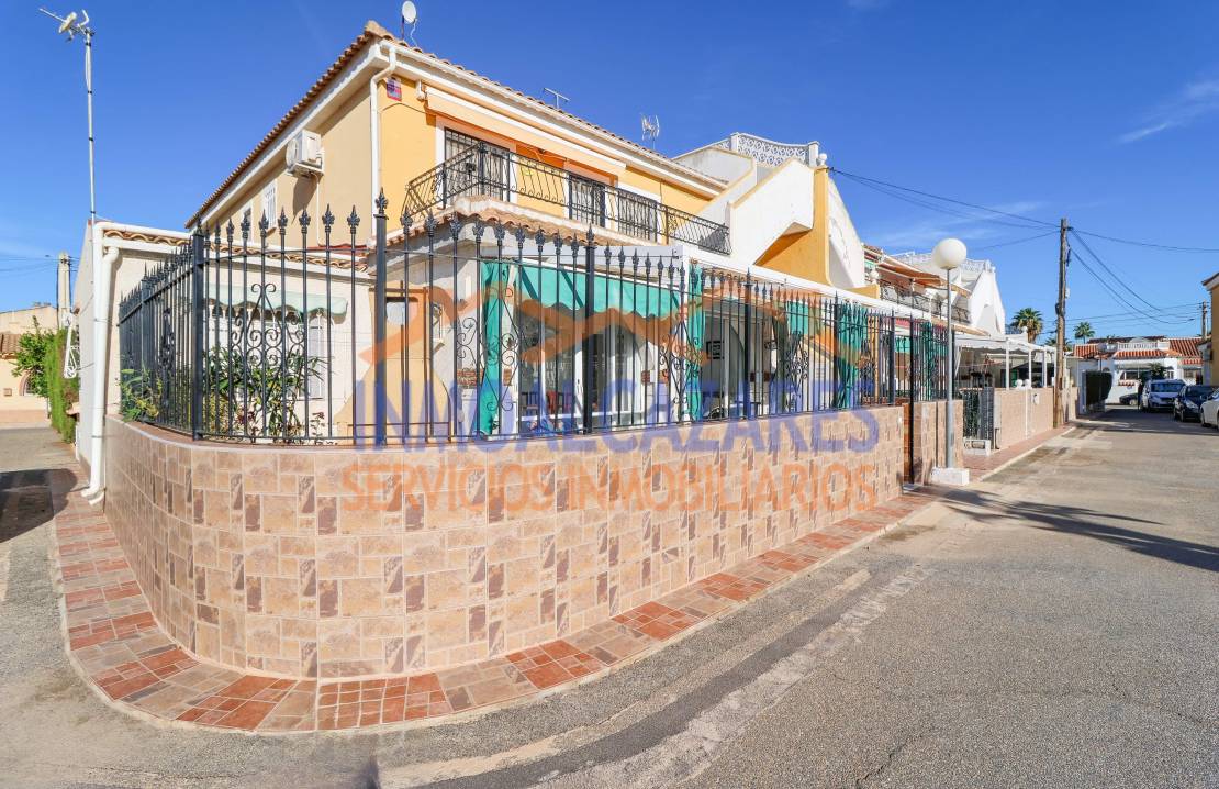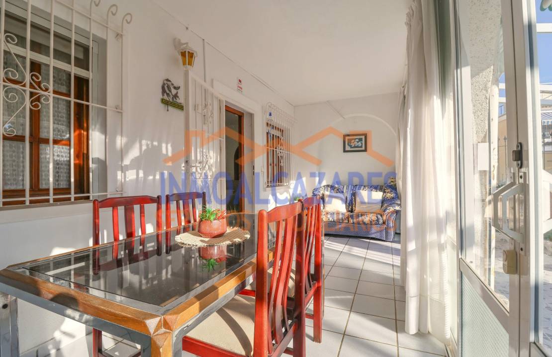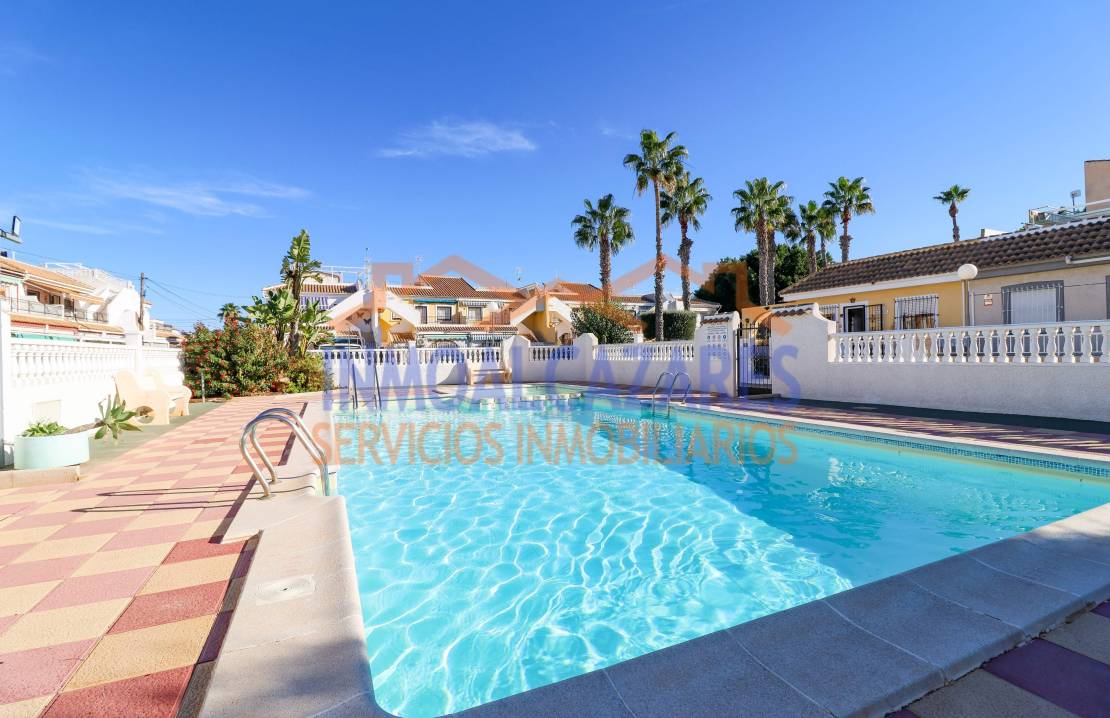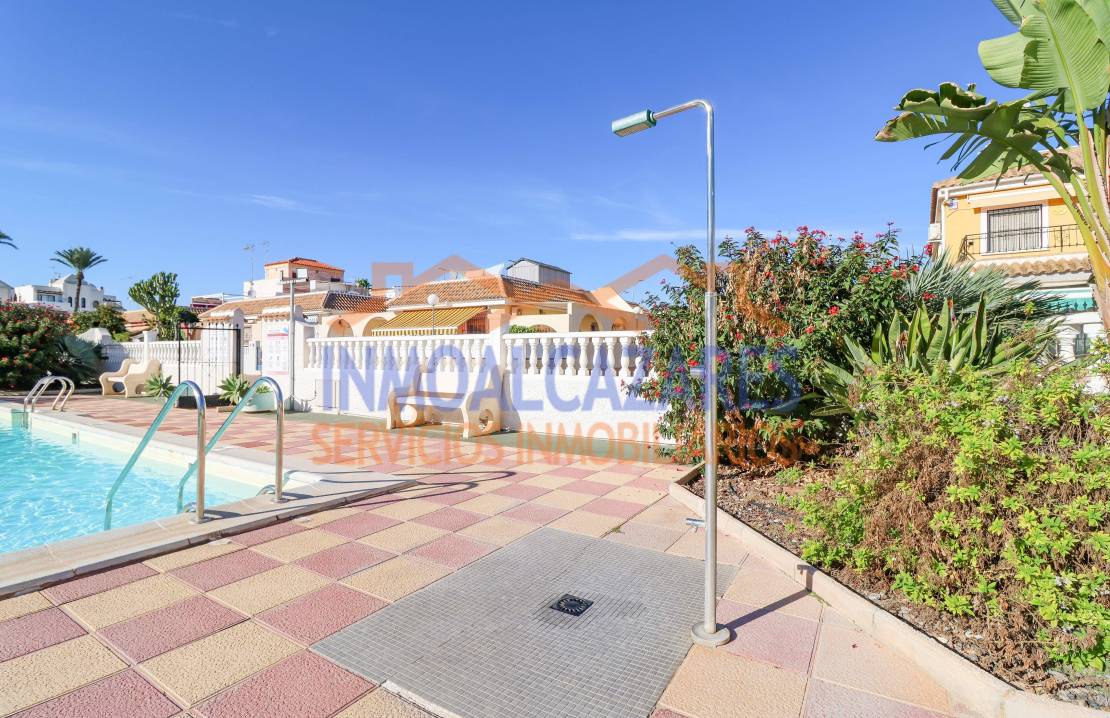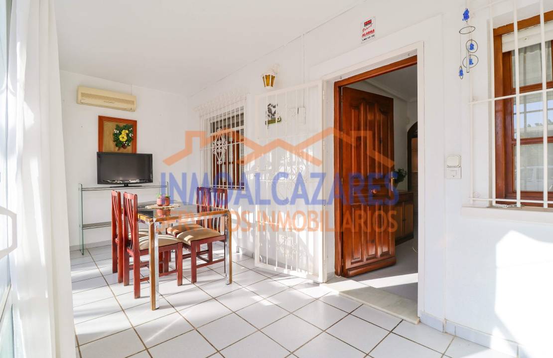 ¡Exclusiva! Te presentamos una oportunidad única, este precioso bungalow planta baja en esquina, en una urbanización privada, con piscina comunitaria, un vecindario que goza de tranquilidad y buenos vecinos, y, además, unos jardines hermosos.~Dispone en su frente de un precioso jardín enlosado y un porche acristalado, que que invita a disfrutar los mejores momentos en buena compañía. Al entrar, encontramos el salón-comedor, muy luminoso, cocina independiente totalmente equipada y con electrodomésticos, con salida a un patio interior, tres habitaciones y dos baños, uno de ellos en suite con la habitación principal.~Totalmente amueblada, super cuidada, con aire acondicionado, y con armarios empotrados. Su orientación es SUROESTE. Recalcamos también su ubicación inmejorable, cerca de supermercados y zonas de ocio. Un hogar ideal para tus vacaciones o vivir todo el año y a tan solo 10 minutos de la playa, en Los Narejos, Los Alcázares, Murcia.~