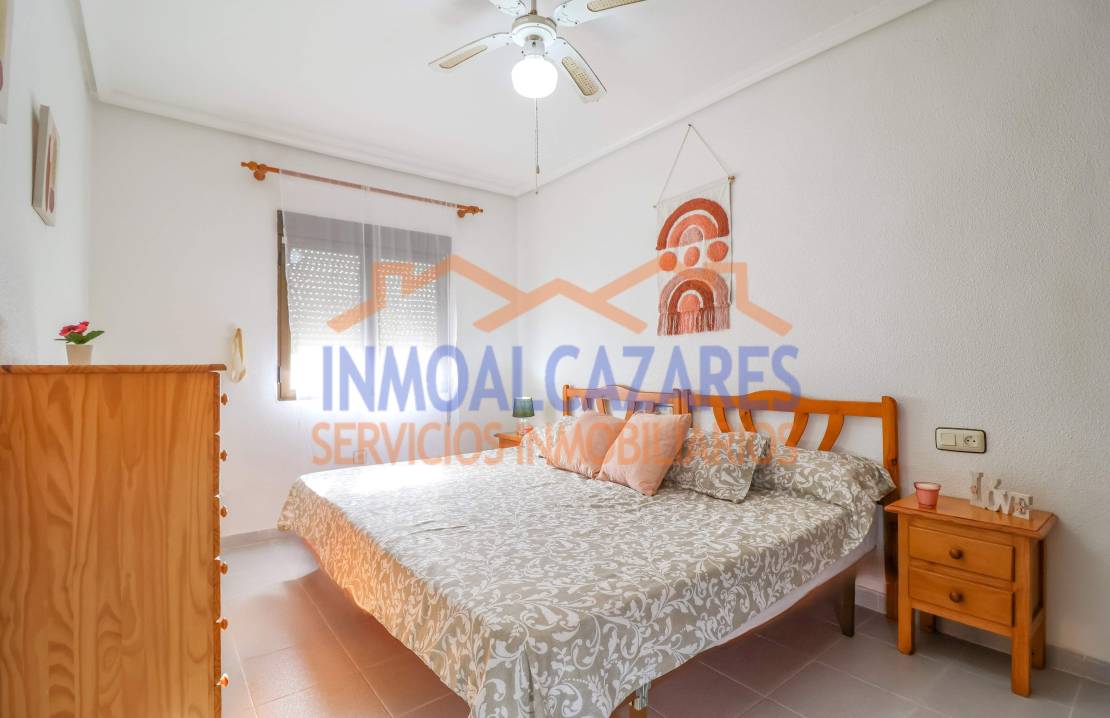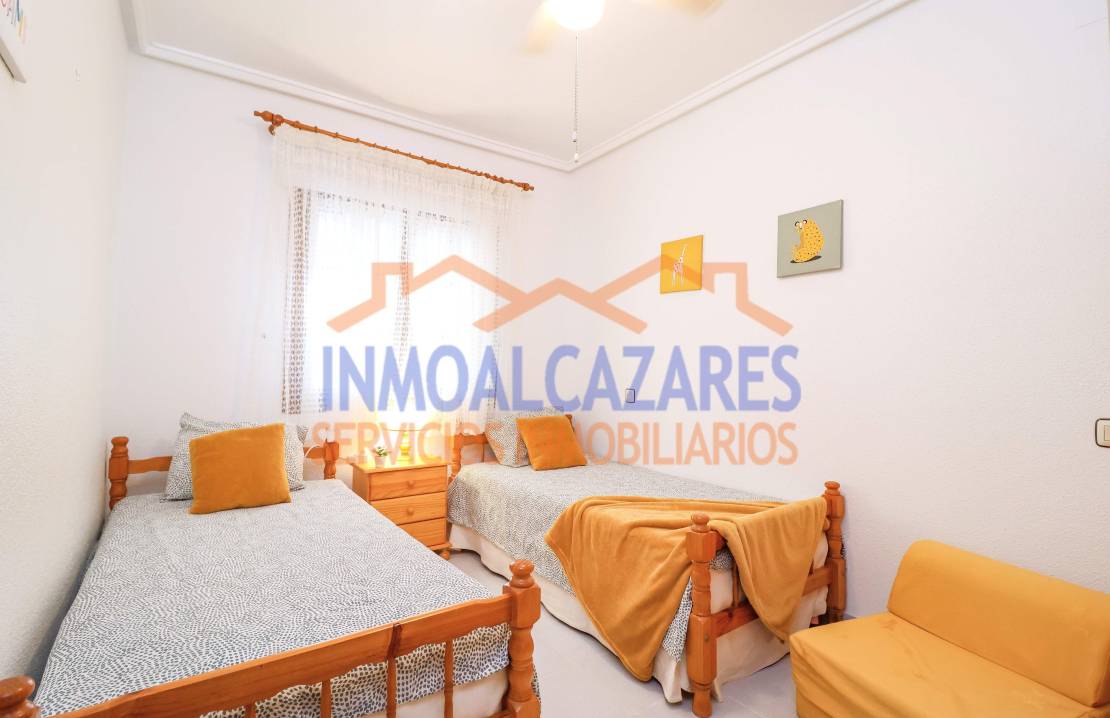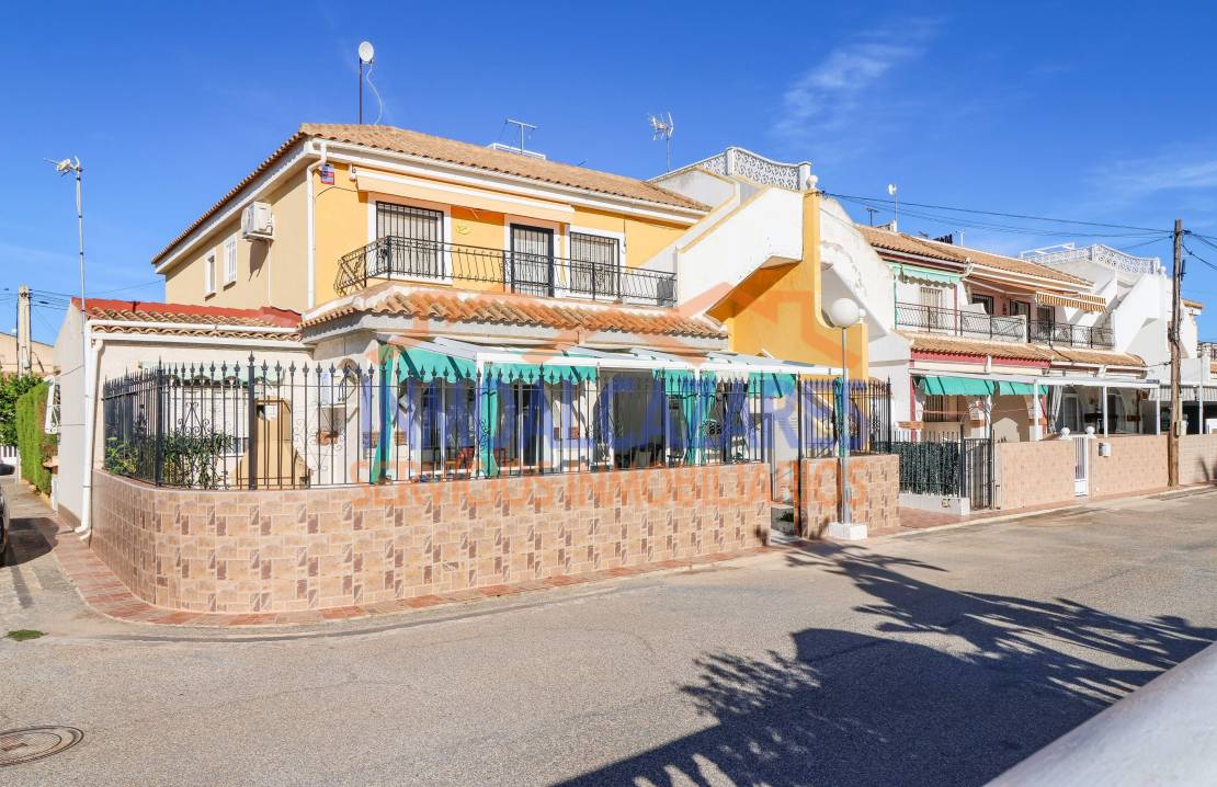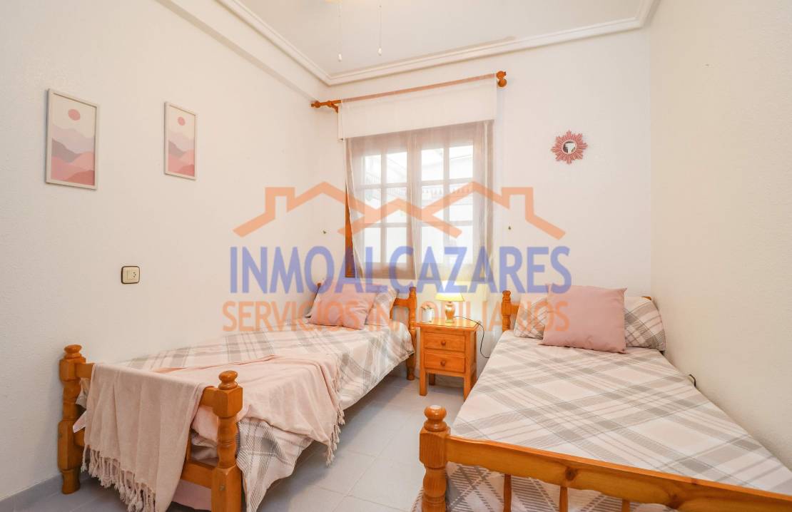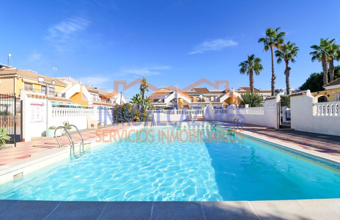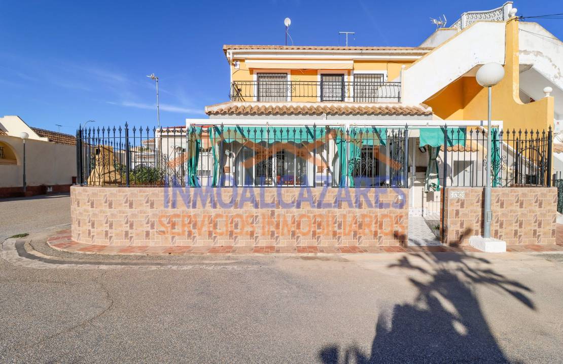 ¡Exclusiva! Te presentamos una oportunidad única, este precioso bungalow planta baja en esquina, en una urbanización privada, con piscina comunitaria, un vecindario que goza de tranquilidad y buenos vecinos, y, además, unos jardines hermosos.~Dispone en su frente de un precioso jardín enlosado y un porche acristalado, que que invita a disfrutar los mejores momentos en buena compañía. Al entrar, encontramos el salón-comedor, muy luminoso, cocina independiente totalmente equipada y con electrodomésticos, con salida a un patio interior, tres habitaciones y dos baños, uno de ellos en suite con la habitación principal.~Totalmente amueblada, super cuidada, con aire acondicionado, y con armarios empotrados. Su orientación es SUROESTE. Recalcamos también su ubicación inmejorable, cerca de supermercados y zonas de ocio. Un hogar ideal para tus vacaciones o vivir todo el año y a tan solo 10 minutos de la playa, en Los Narejos, Los Alcázares, Murcia.~