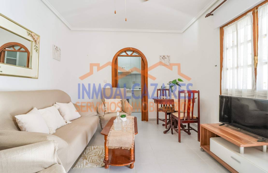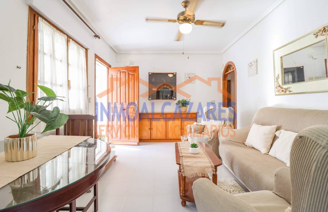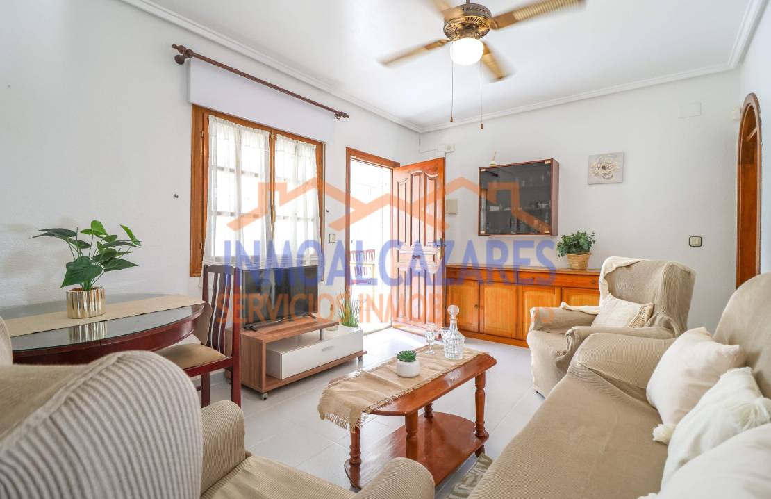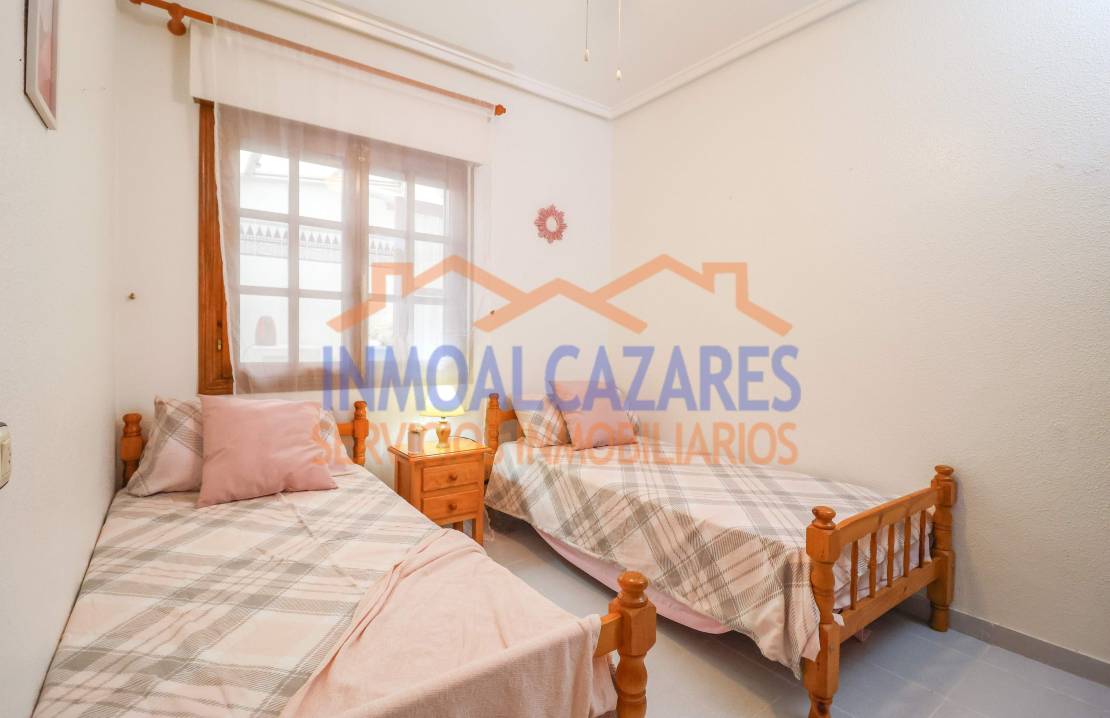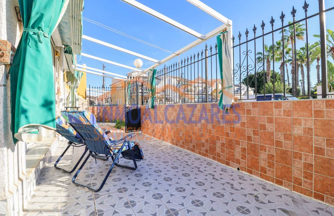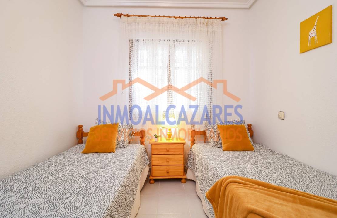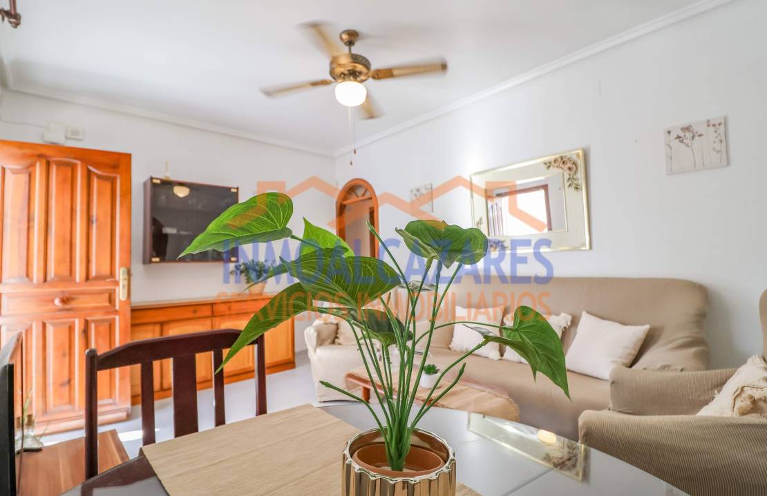 ¡Exclusiva! Te presentamos una oportunidad única, este precioso bungalow planta baja en esquina, en una urbanización privada, con piscina comunitaria, un vecindario que goza de tranquilidad y buenos vecinos, y, además, unos jardines hermosos.~Dispone en su frente de un precioso jardín enlosado y un porche acristalado, que que invita a disfrutar los mejores momentos en buena compañía. Al entrar, encontramos el salón-comedor, muy luminoso, cocina independiente totalmente equipada y con electrodomésticos, con salida a un patio interior, tres habitaciones y dos baños, uno de ellos en suite con la habitación principal.~Totalmente amueblada, super cuidada, con aire acondicionado, y con armarios empotrados. Su orientación es SUROESTE. Recalcamos también su ubicación inmejorable, cerca de supermercados y zonas de ocio. Un hogar ideal para tus vacaciones o vivir todo el año y a tan solo 10 minutos de la playa, en Los Narejos, Los Alcázares, Murcia.~