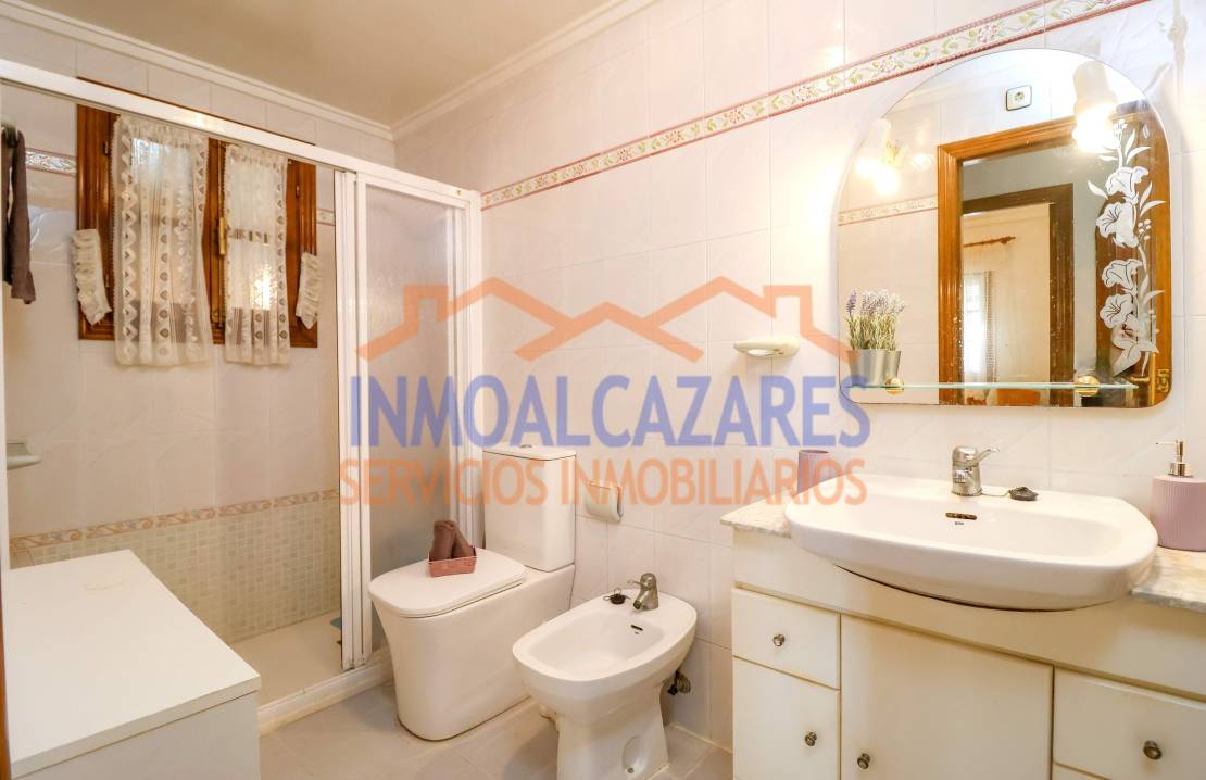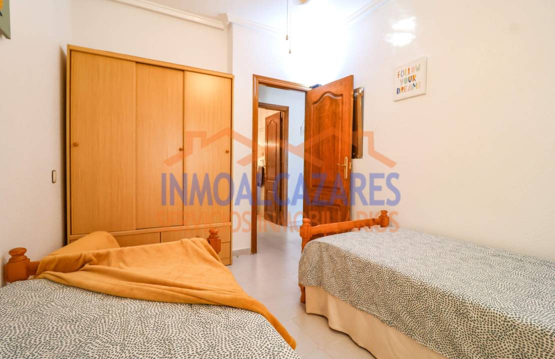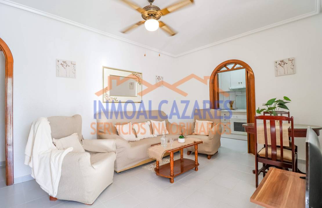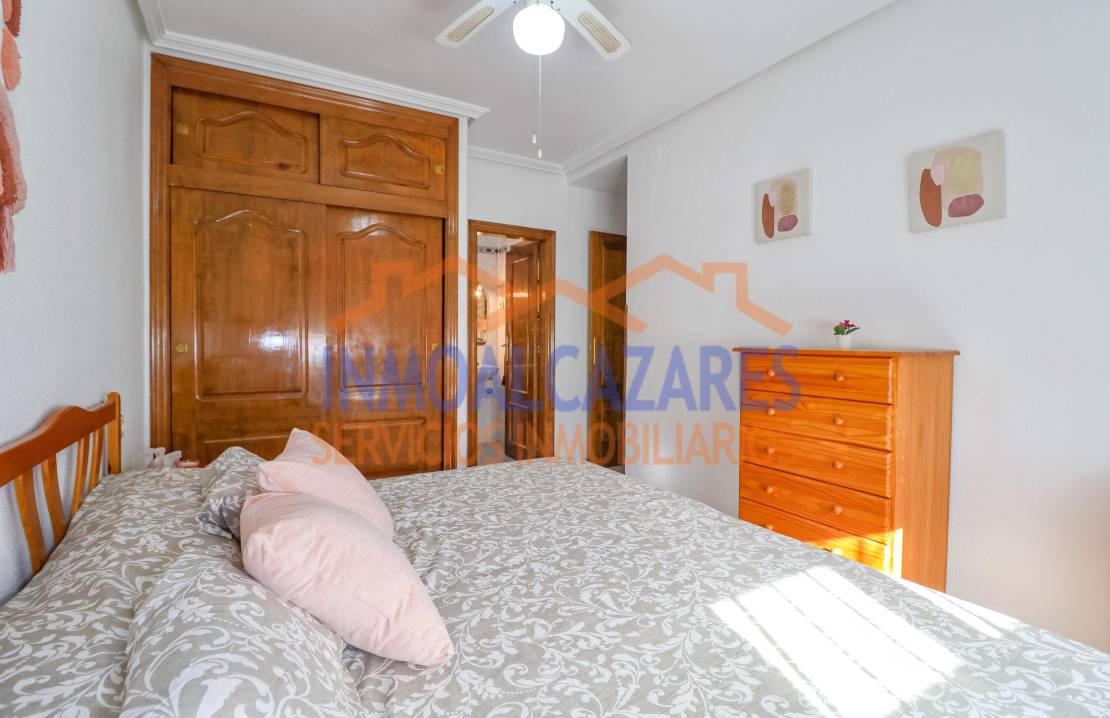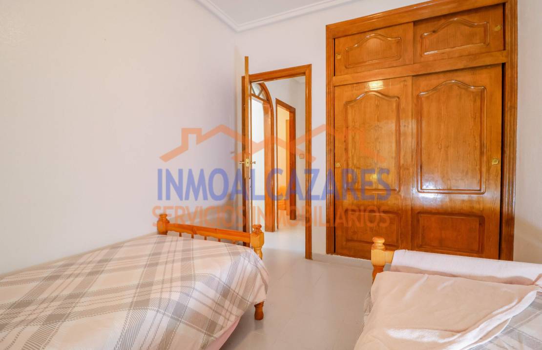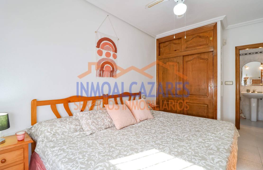 ¡Exclusiva! Te presentamos una oportunidad única, este precioso bungalow planta baja en esquina, en una urbanización privada, con piscina comunitaria, un vecindario que goza de tranquilidad y buenos vecinos, y, además, unos jardines hermosos.~Dispone en su frente de un precioso jardín enlosado y un porche acristalado, que que invita a disfrutar los mejores momentos en buena compañía. Al entrar, encontramos el salón-comedor, muy luminoso, cocina independiente totalmente equipada y con electrodomésticos, con salida a un patio interior, tres habitaciones y dos baños, uno de ellos en suite con la habitación principal.~Totalmente amueblada, super cuidada, con aire acondicionado, y con armarios empotrados. Su orientación es SUROESTE. Recalcamos también su ubicación inmejorable, cerca de supermercados y zonas de ocio. Un hogar ideal para tus vacaciones o vivir todo el año y a tan solo 10 minutos de la playa, en Los Narejos, Los Alcázares, Murcia.~