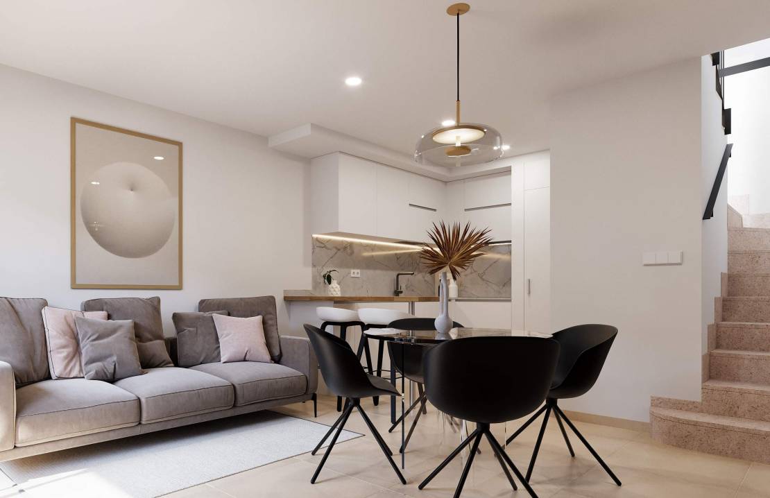 Te presentamos este exclusivo dúplex adosado en Santa Rosalía Pueblo, una vivienda diseñada para quienes valoran la funcionalidad y el confort, en un entorno tranquilo y cuidado próximo al mar.~La vivienda se distribuye en varias plantas, ofreciendo una perfecta separación entre zona de día y de descanso. En la planta baja, nos recibe un porche cubierto, perfecto para relajarte al aire libre, y al entrar un luminoso salón-comedor con cocina integrada, ideal para el día a día, un patio interior y un baño. En la planta superior se ubican los dos dormitorios, junto a un baño completo. Y en la última planta, el residencial cuenta con opciones de viviendas con un tercer dormitorio, y todas cuentan con, un espectacular solárium privado, un espacio versátil donde podrás crear tu zona chill out, con cocina de verano, perfecta para tomar el sol o disfrutar de veladas únicas durante todo el año. ~Además, cuenta con plaza de garaje y piscina comunitaria, acabados de alta calidad, puerta de seguridad, doble acristalamiento, cocina equipada, preinstalación de aire acondicionado y armarios empotrados.~Ubicado en Santa Rosalía Pueblo, una zona tranquila y perfectamente conectada, a escasos 10 minutos en coche de las magníficas playas de la Costa Cálida, ideal tanto para vivir todo el año o residencia vacacional.~~